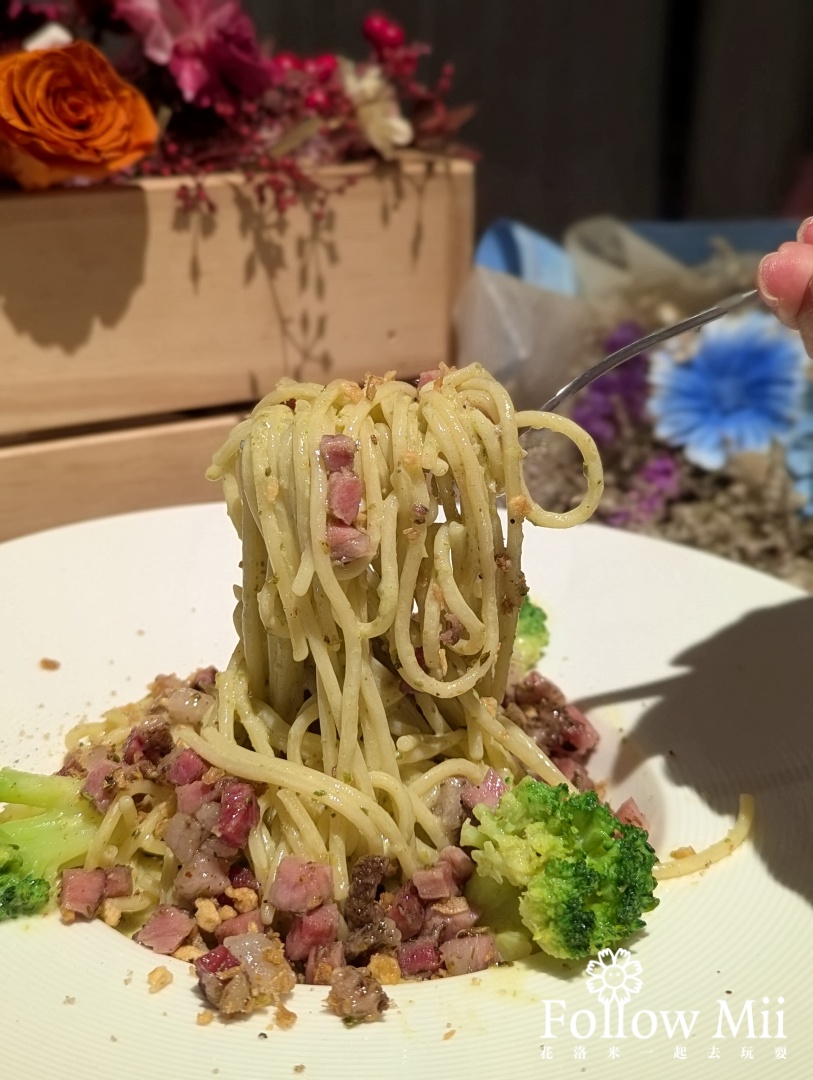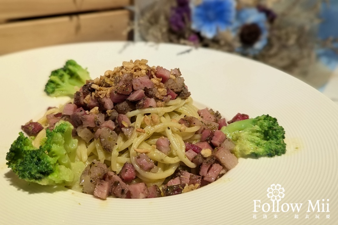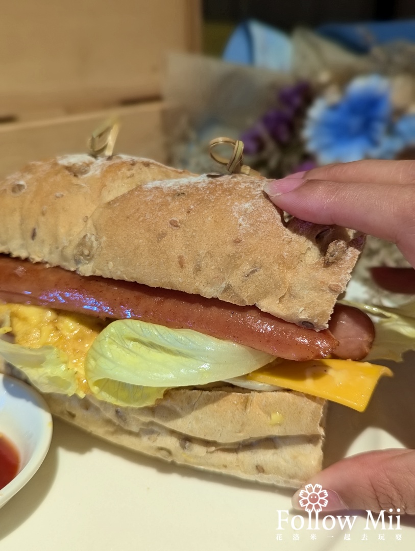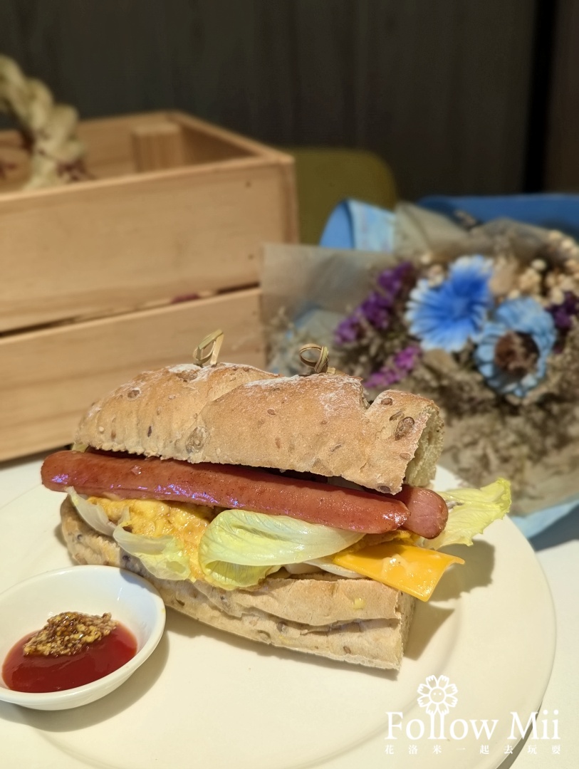 除了甜點,這邊也提供滿多鹹食可供選擇。像是蒜酥馬告鹹豬肉義大利麵,或是葵花起士法棍潛艇堡也都很推薦喔!