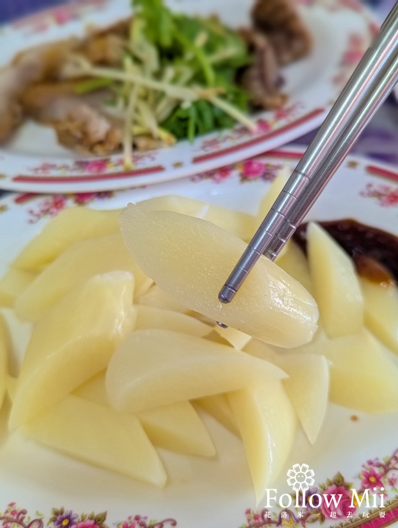 想說點一點蔬菜類的就選了涼拌筊白筍,這麼簡簡單單的就好吃。不用加任何調味料,光是單吃的筊白筍原本甜味就很夠了。
