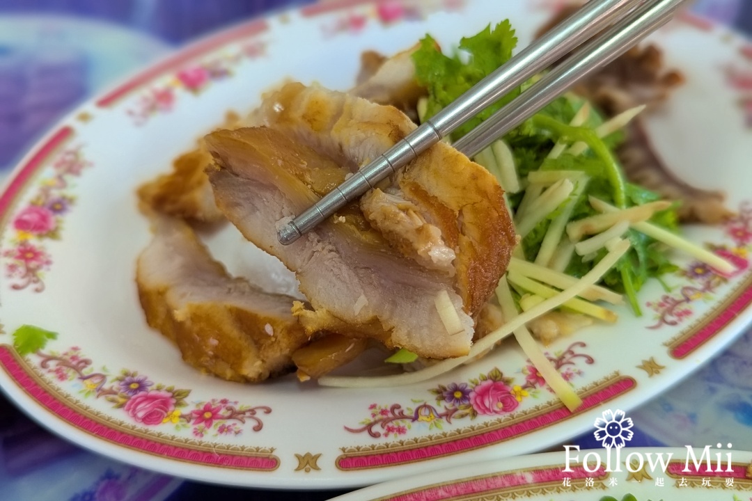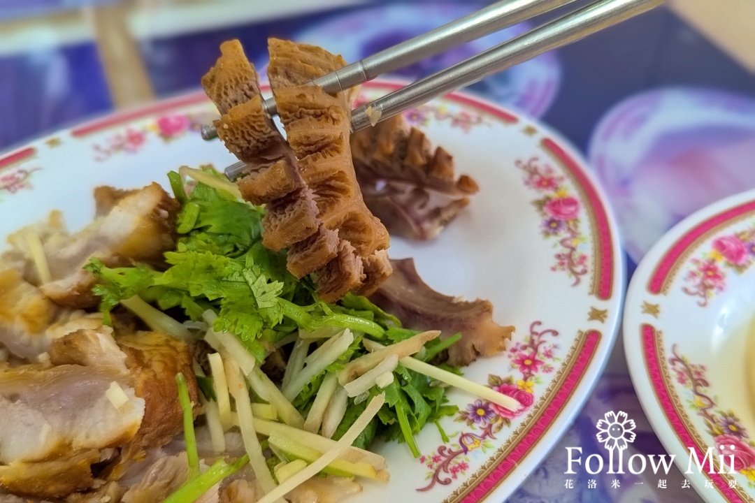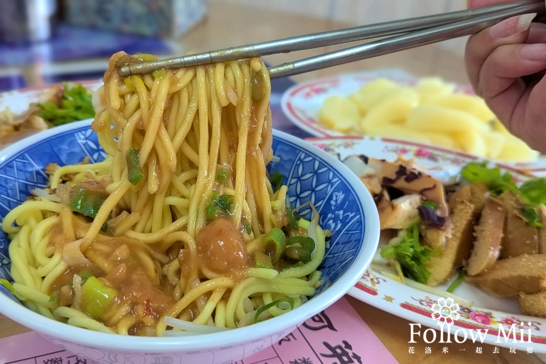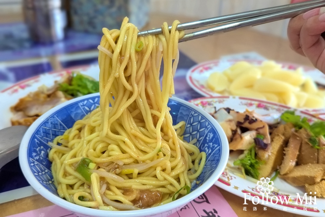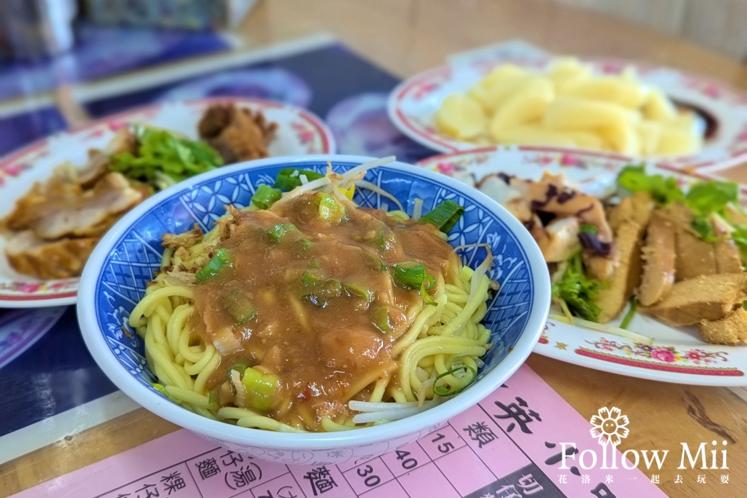 來這裡就是點碗麵,然後配一大堆黑白切。我選了乾麵,但滿意外的是他們的醬汁是這種粉紅色的。好像吃肉圓的那種醬喔!