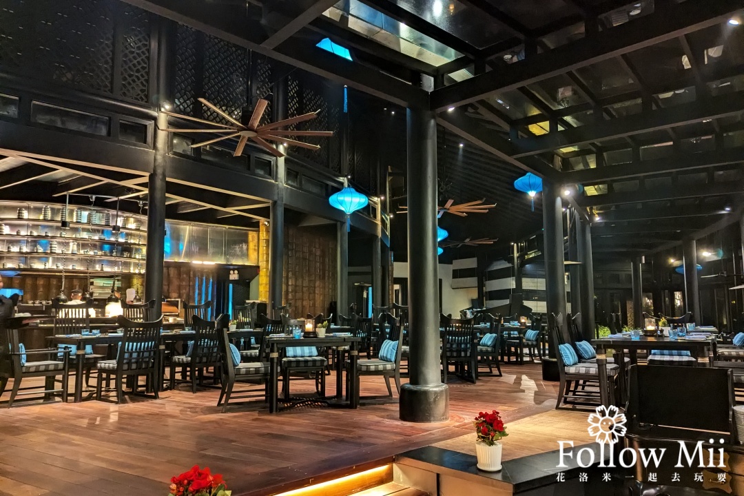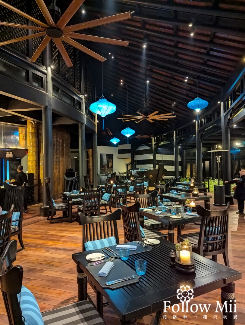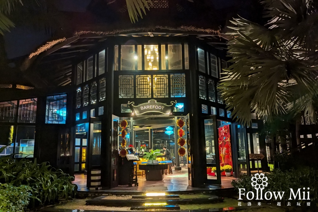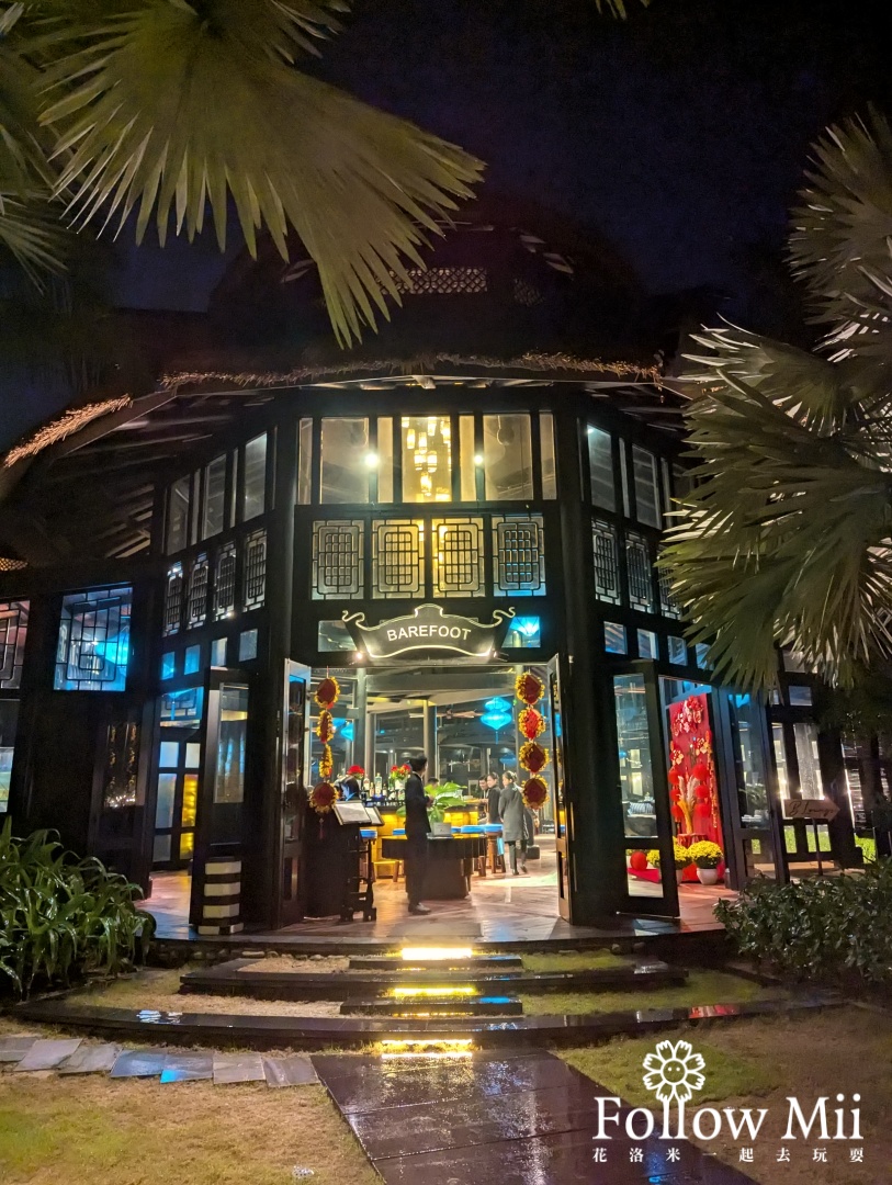 這間位在峴港洲際陽光半島度假酒店裡面的Barefoot,就在海灘的位置,都是玻璃帷幕的外觀,夜晚打了燈之後有點神祕感。
