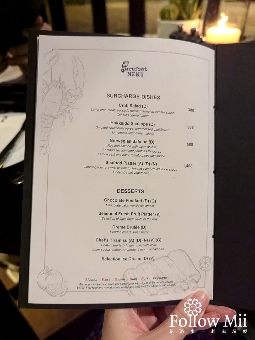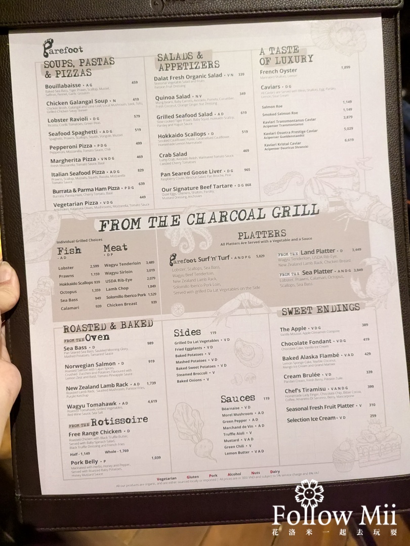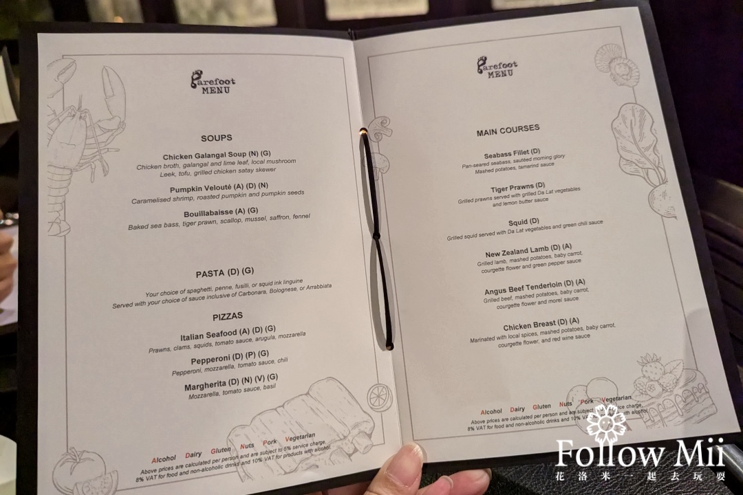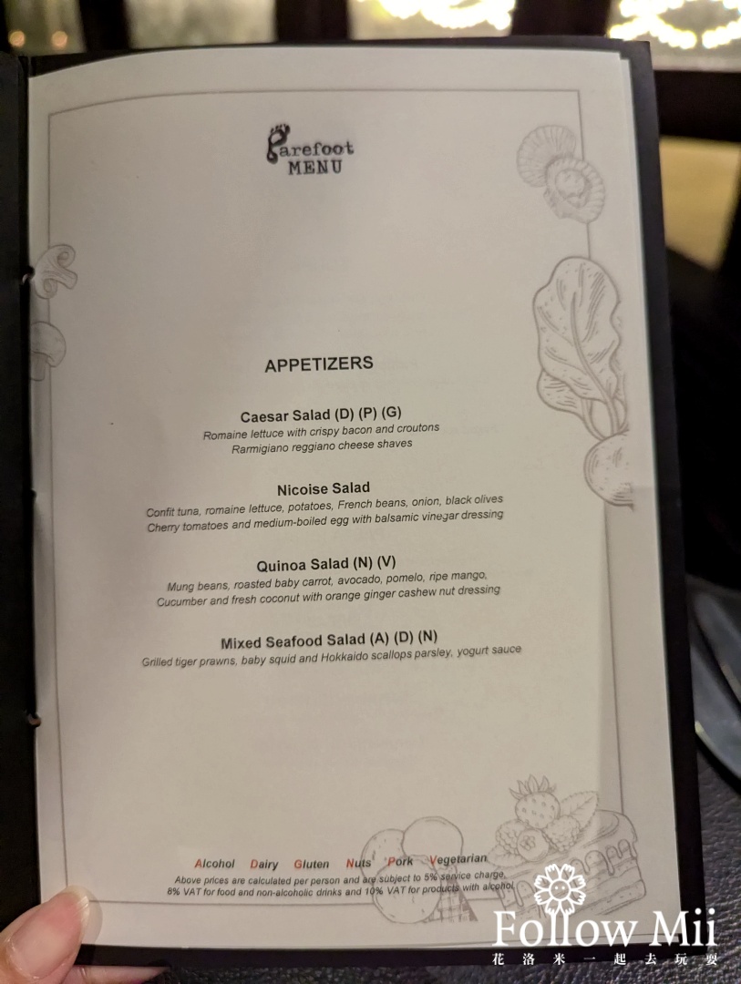 因為中午吃過了Citron餐廳,所以晚上我們改吃Barefoot,雖然只能點某些菜色,但其實選擇也算多,就看看我們吃了哪些餐點喔!