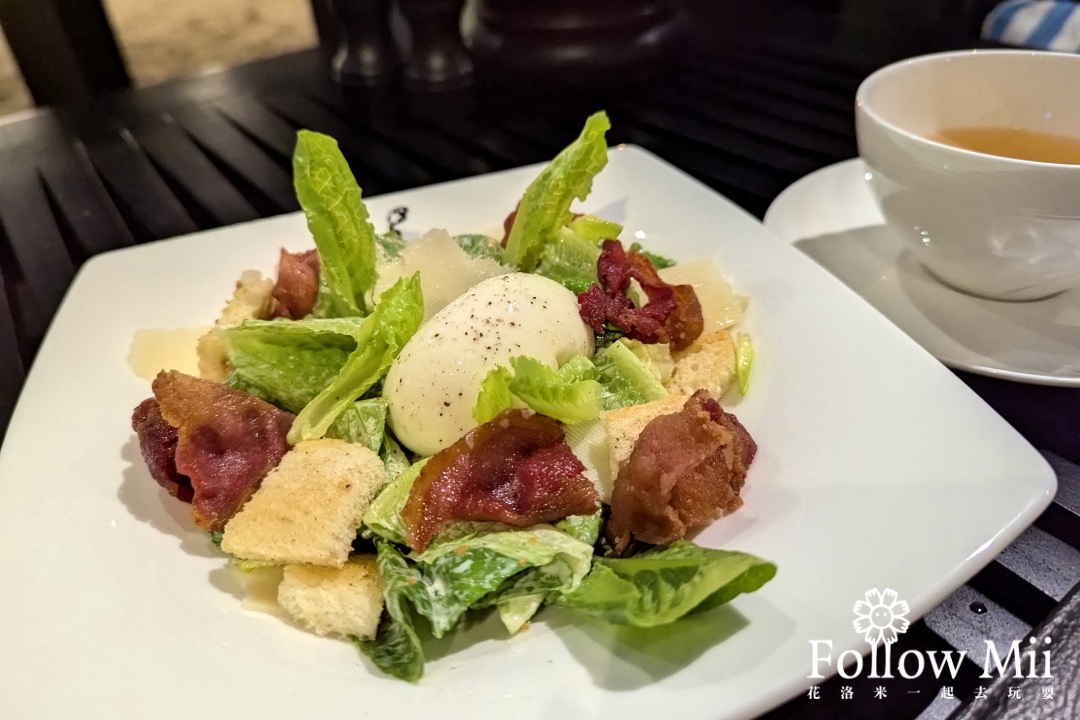 沙拉的部分,我和老爺一人點了一份,老爺選的是凱薩沙拉。我們以為沙拉可能小小的,但誰知道這麼頂級的飯店餐點份量這麼大啊!