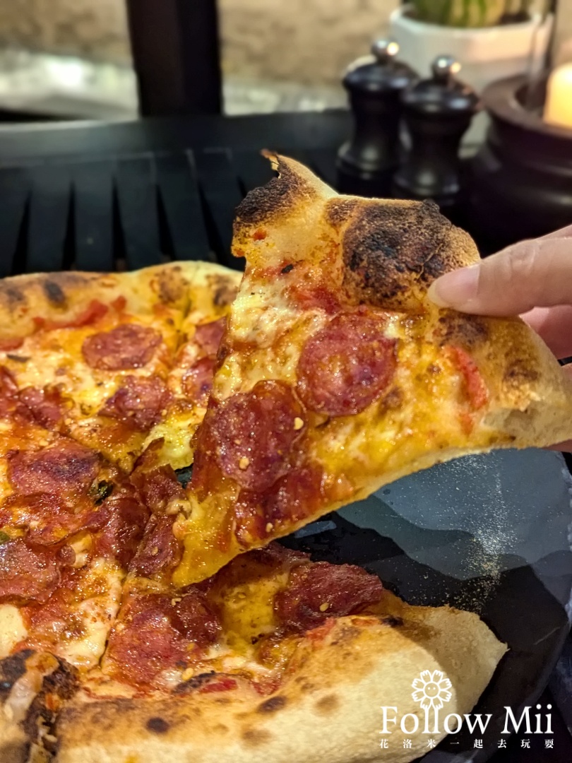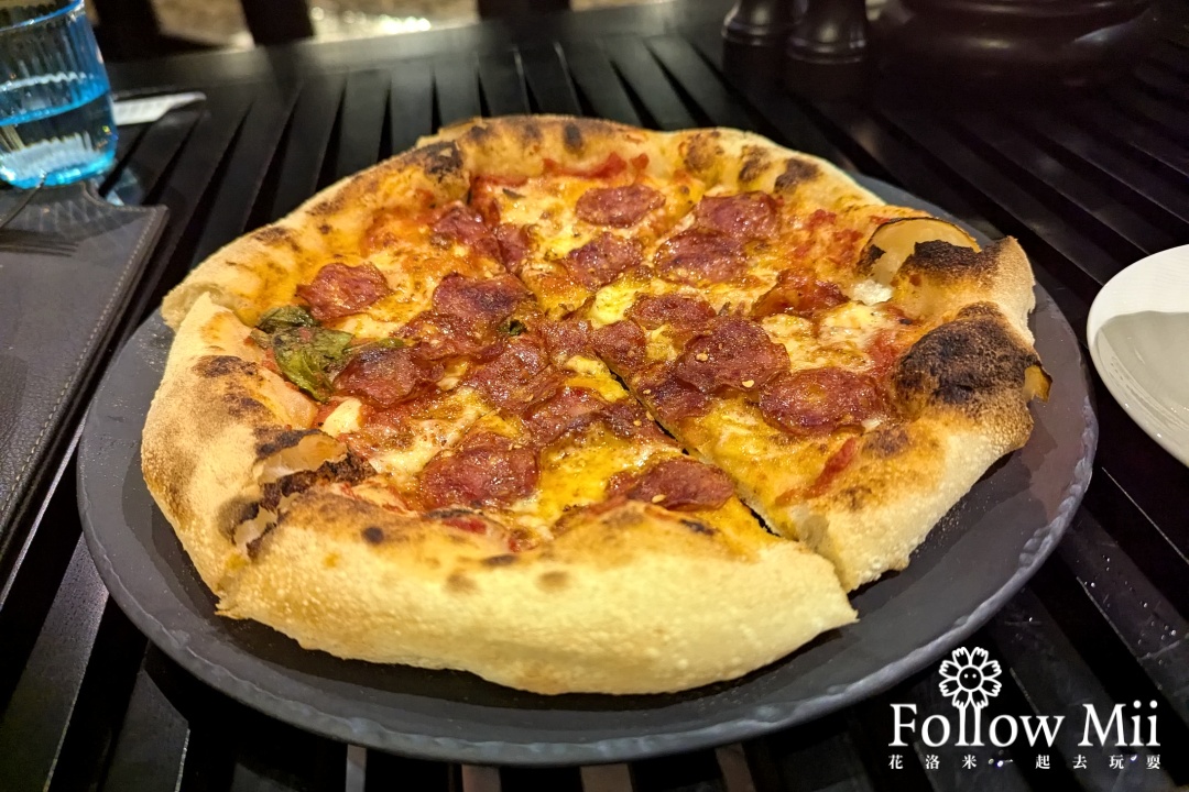 主餐老爺選了披薩,們以為這裡的披薩可能是小小一個,結果這個看起來像是有10吋這麼大,兩個人吃有夠多的。