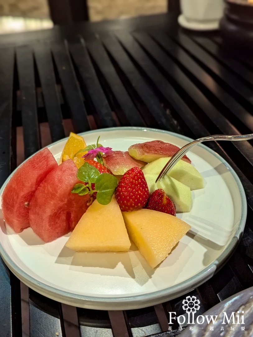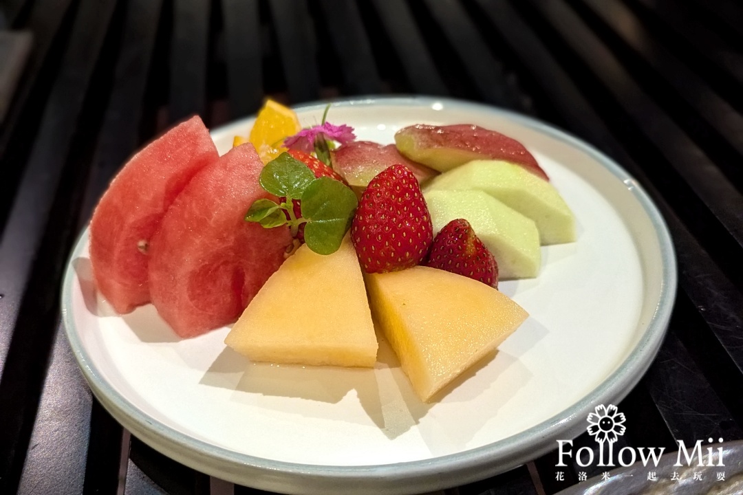 老爺選了季節水果拼盤。即使是這麼簡單的一道,但廚師就是能把它擺出高級感,連配色都很漂亮。