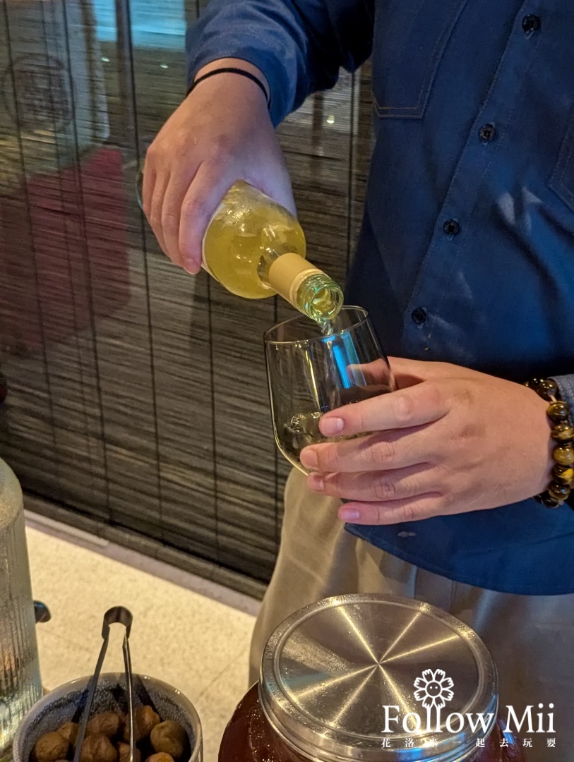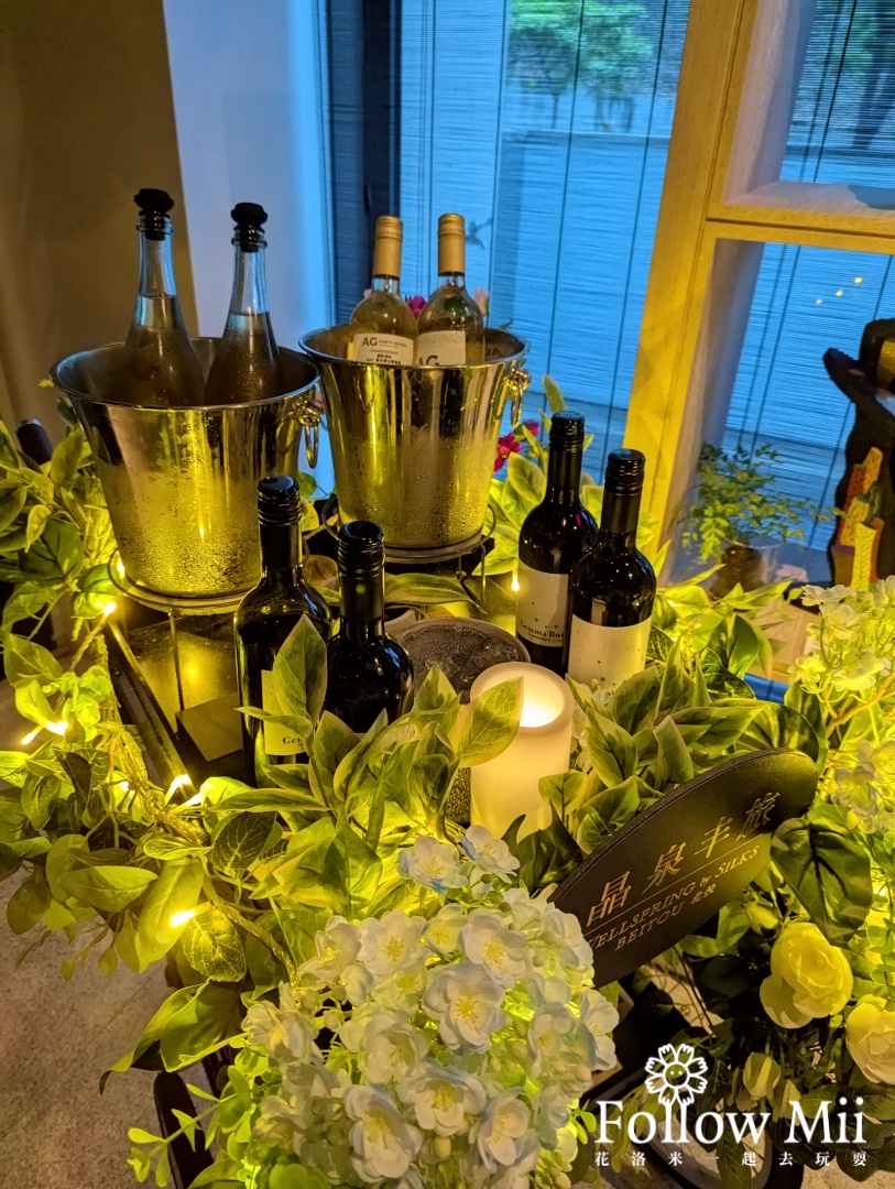 傍晚時分,這邊提供多種酒類飲料讓客人享用。 (酒品和點心,每天內容不見得一樣喔!)