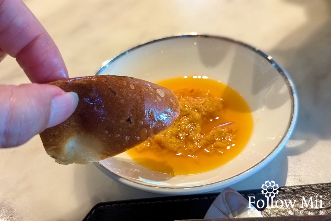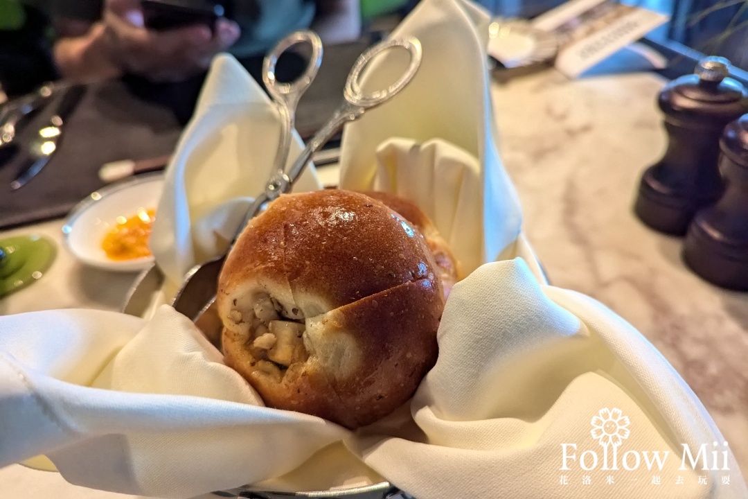 剛烤好的麵包就是香,尤其是這種手工麵包。這邊特別的是搭配麵包麵包使用的是很有特色的醬汁,是帶有一點點辣味的醬汁喔!