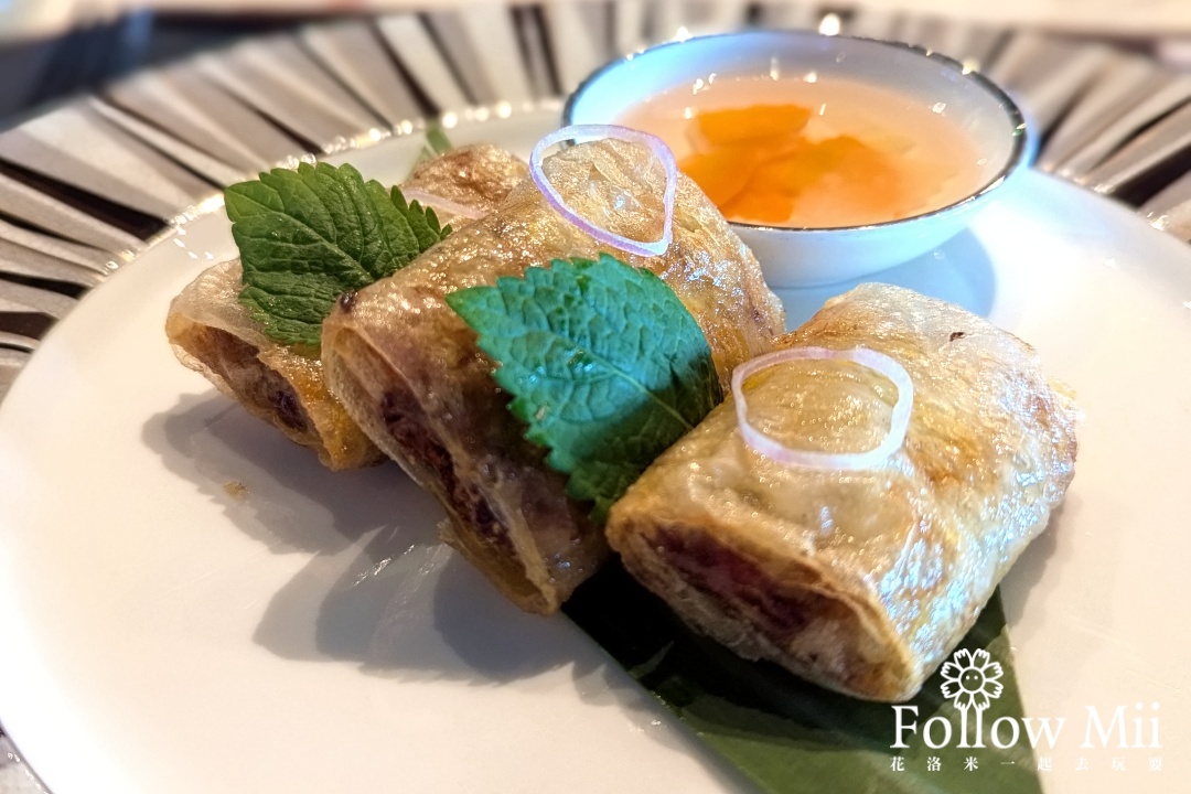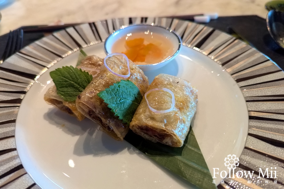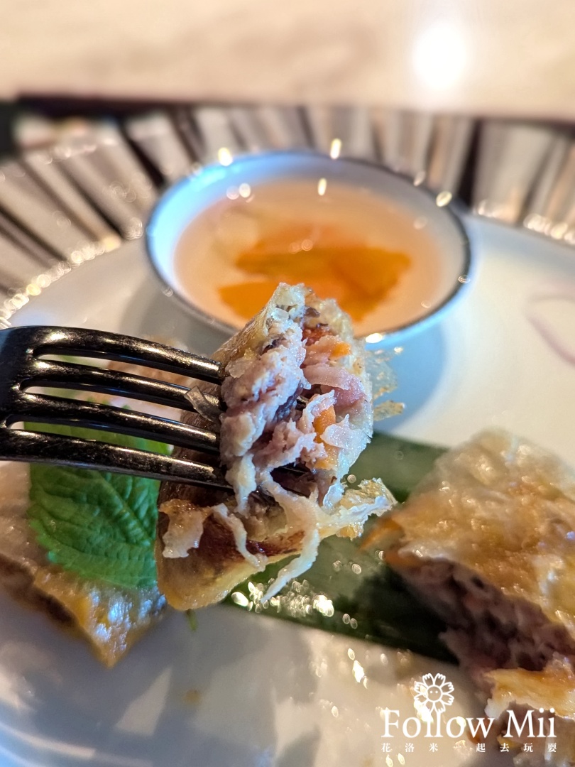這是開胃前菜的其中一個選項,剛炸好的春捲熱騰騰上桌,香氣都飄過來囉!