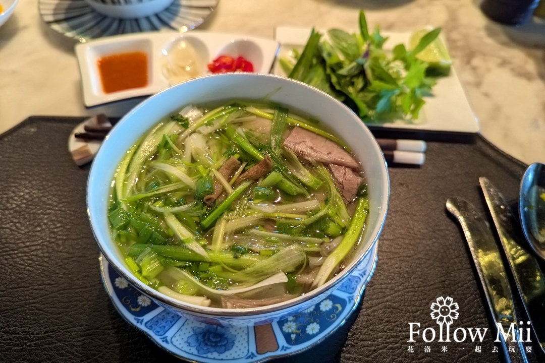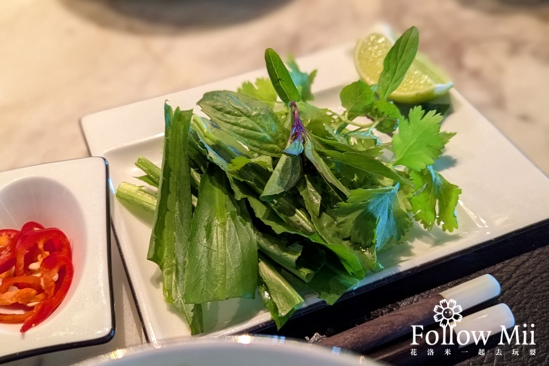 主餐我很保守的點了牛肉越南河粉,一大碗的河粉搭配了一些辛香料和配菜。這樣一整套,好像吃下去也會很飽啊!