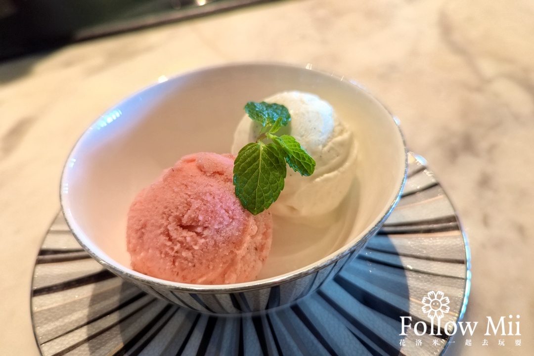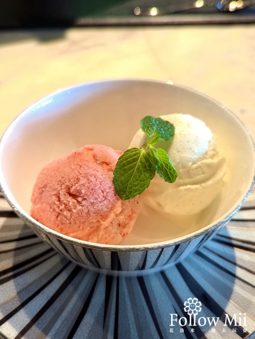 餐後甜點老爺選了冰淇淋,有草莓和香草口味,很適合解膩的甜點。