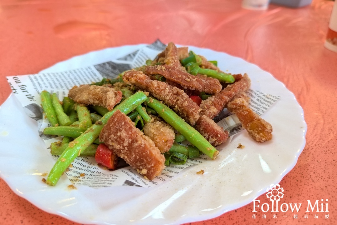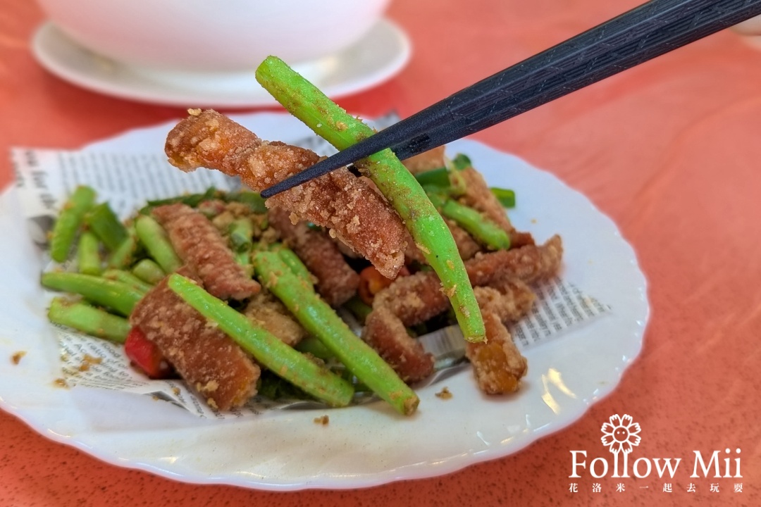 這一道菜就是四季豆和肥腸都炸得酥酥脆脆的一起上桌,單吃就很好吃喔!
