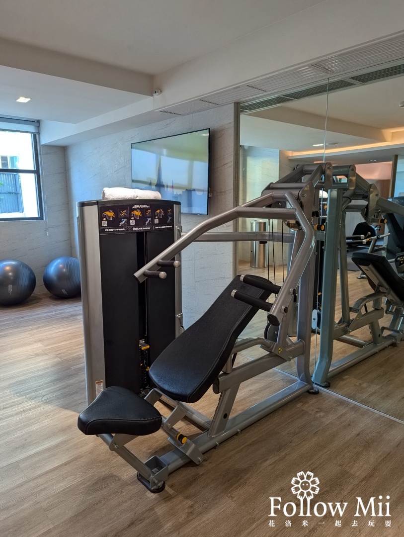 健身房面積不算太大,但是空間是我喜歡的那種,很明亮而且都是木地板。