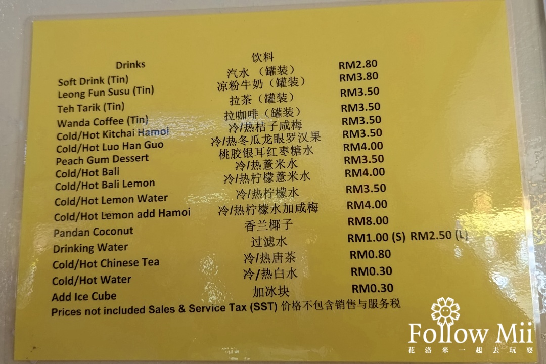 帶大家看看這裡的菜單,可以把他想成沙巴的快炒店。而且份量有分大小,人少就點小份的喔!