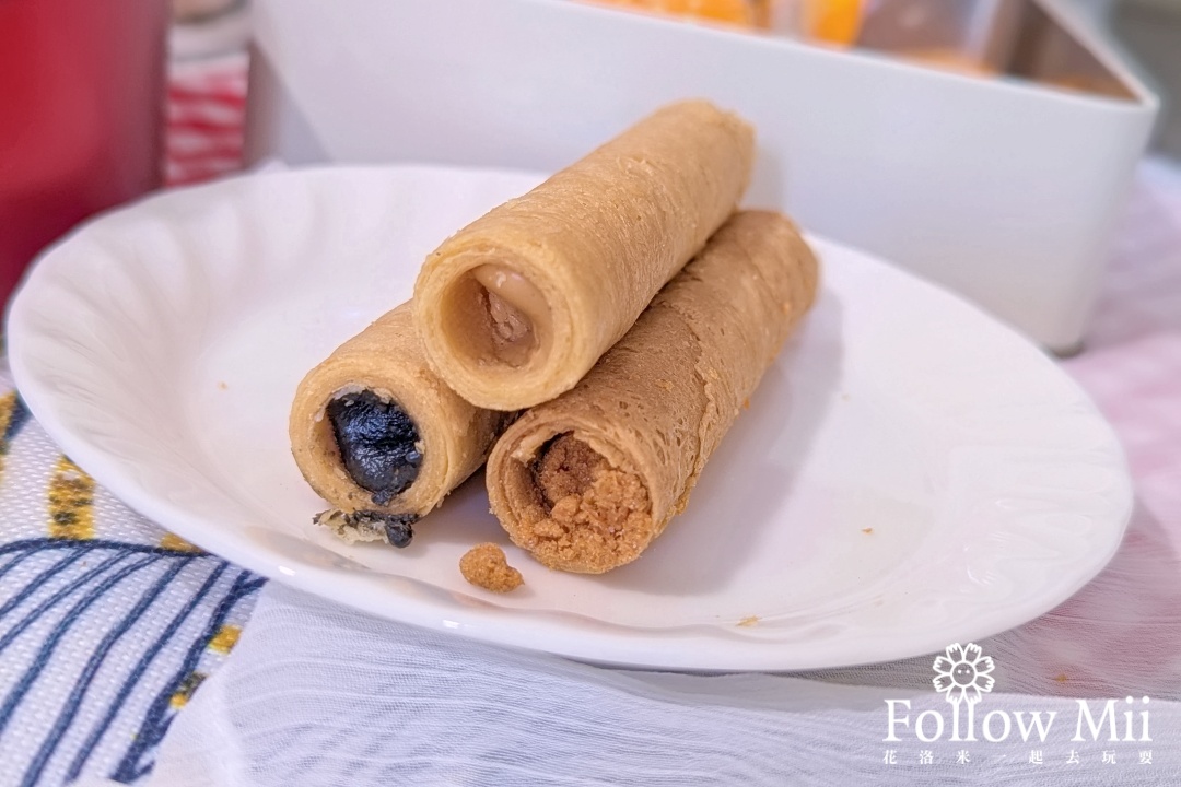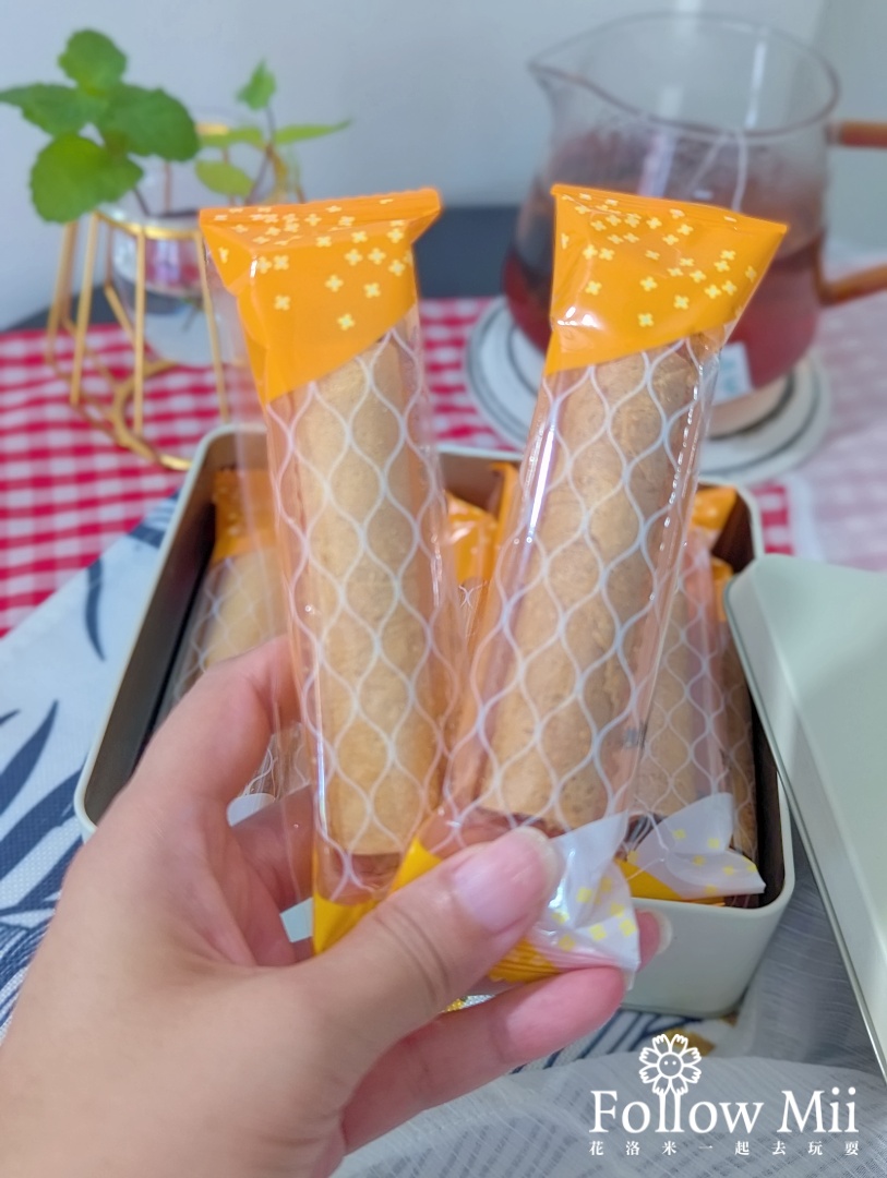 沒想到鳳梨灣居然還有蛋捲,還取了好聽的名字,花蓮蛋捲物語。這款融合文青溫暖與花蓮在地風味的手作蛋捲,有花生、芝麻、肉鬆三種內餡口味,層層酥脆,內餡香濃,每一口都香濃。