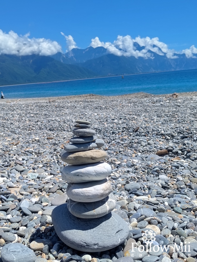 吃完早餐之後,散步到七星潭海邊看看美麗的海岸線,也疊個石頭吧!來七星潭怎能錯過啊!
