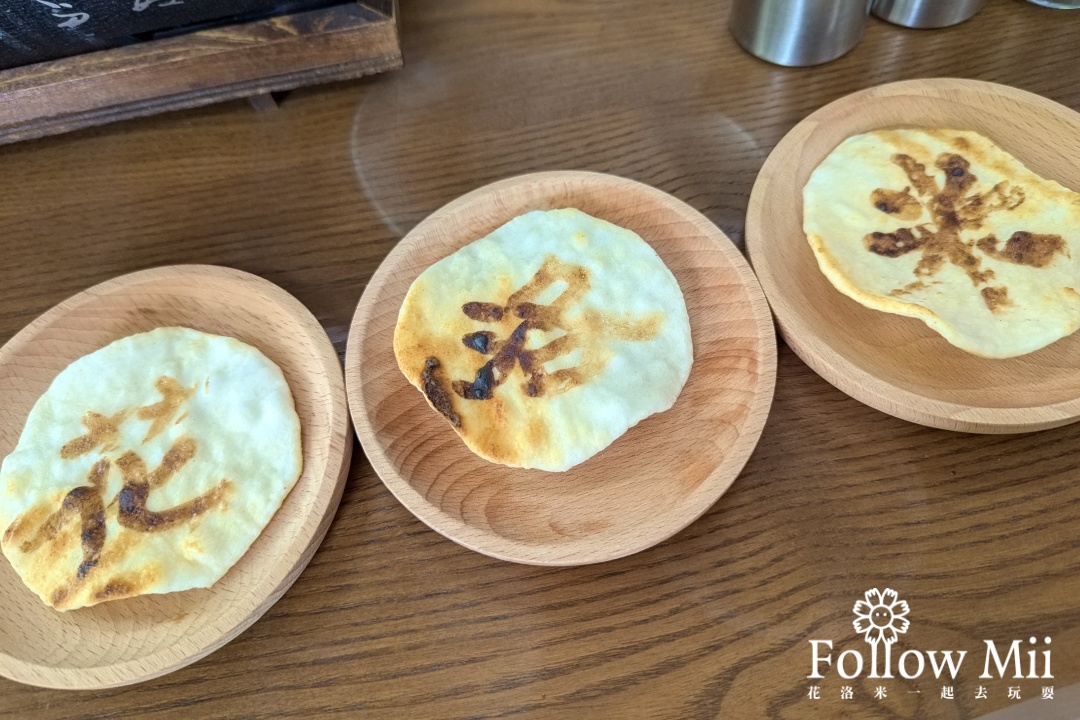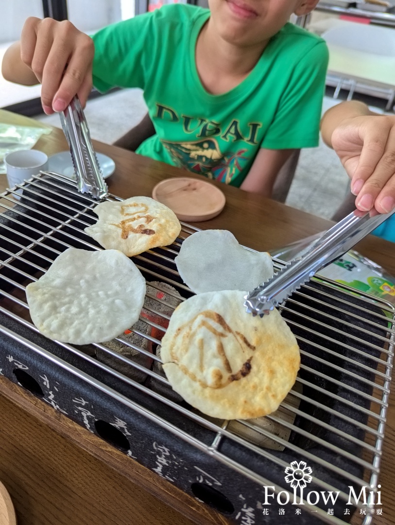 DIY是烤醬油仙貝,很好玩,小孩也會喜歡。烤完之後現場吃,又香又脆,超讚的啦!