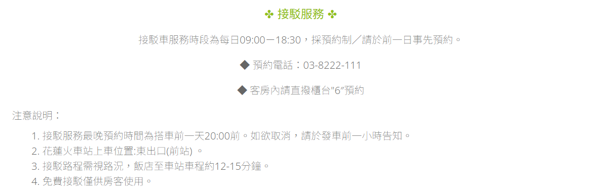 如果你是搭火車來的,飯店也有提供房客免費接駁服務喔!