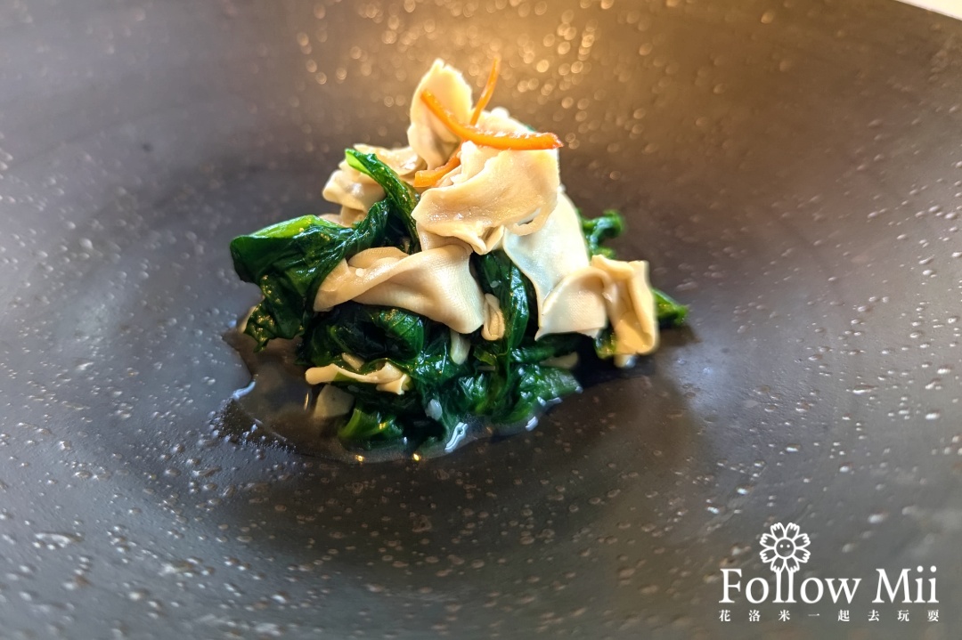 主廚厲害了,把味道感覺完全不太搭配的食材放在一起。沒想到主廚的處理方式挺好,吃起來會覺得百頁很嫩,波菜很甘甜。