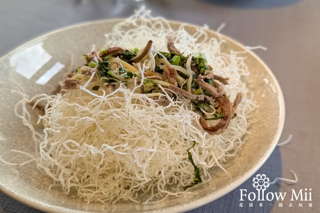 把醬汁和米粉拌勻,會看到剛剛一大盤的米粉慢慢變軟,最後吸收了醬汁的香甜,入口滑順美味。這真的是一道讓你視覺和味覺都很有記憶點的菜色。