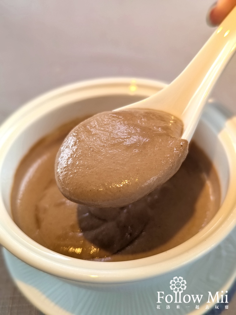 結果第一口喝下去我跟朋友兩個人就眼睛為之一亮,好香喔!原來這裡面有除了核桃還有花生、白芝麻和麵茶,所以香氣濃郁。然後明明已經很飽了,因為甜點太優秀還把這一整碗喝光。