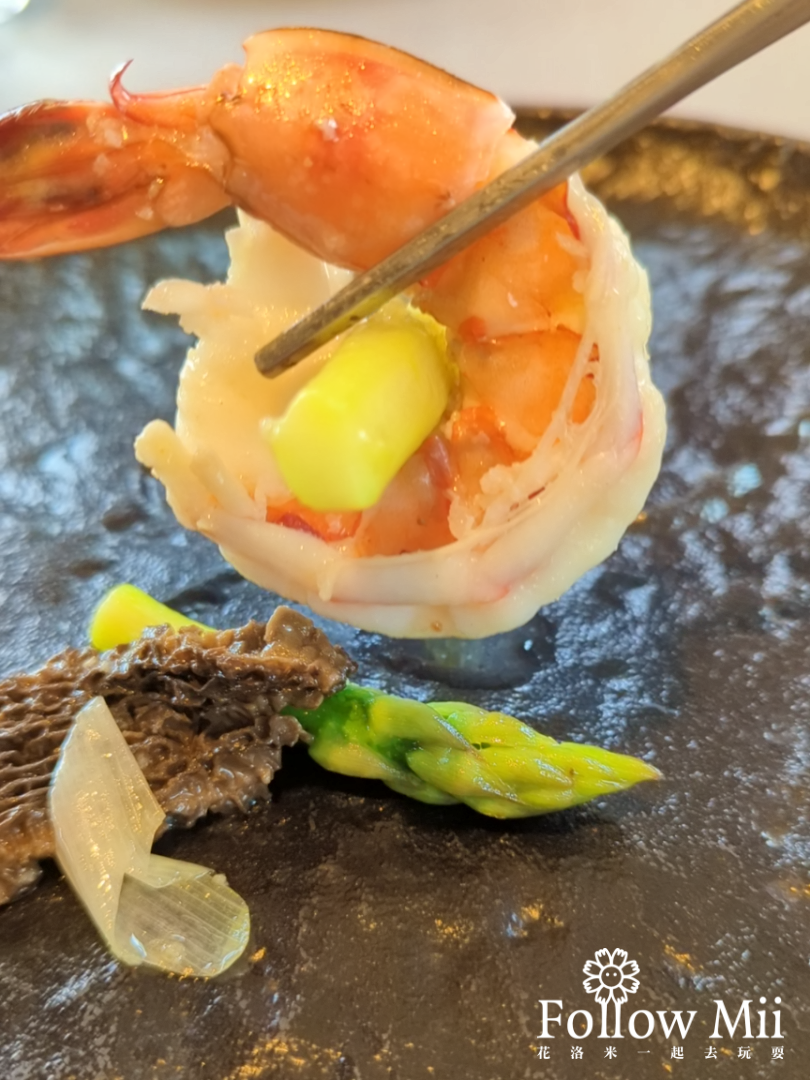 搭配著蘆筍和羊肚菌菇的明蝦,意外的鮮甜又彈牙。