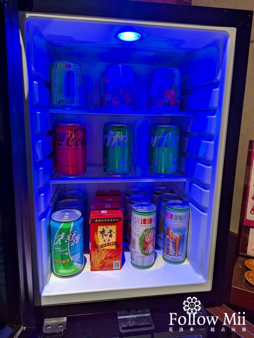 連冰箱都比一般飯店的大,買東西回飯店都不用怕沒地方冰了。裡面的飲料是免費的喔!