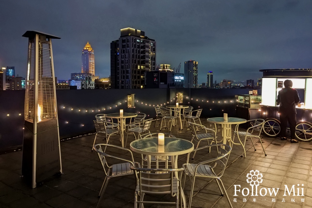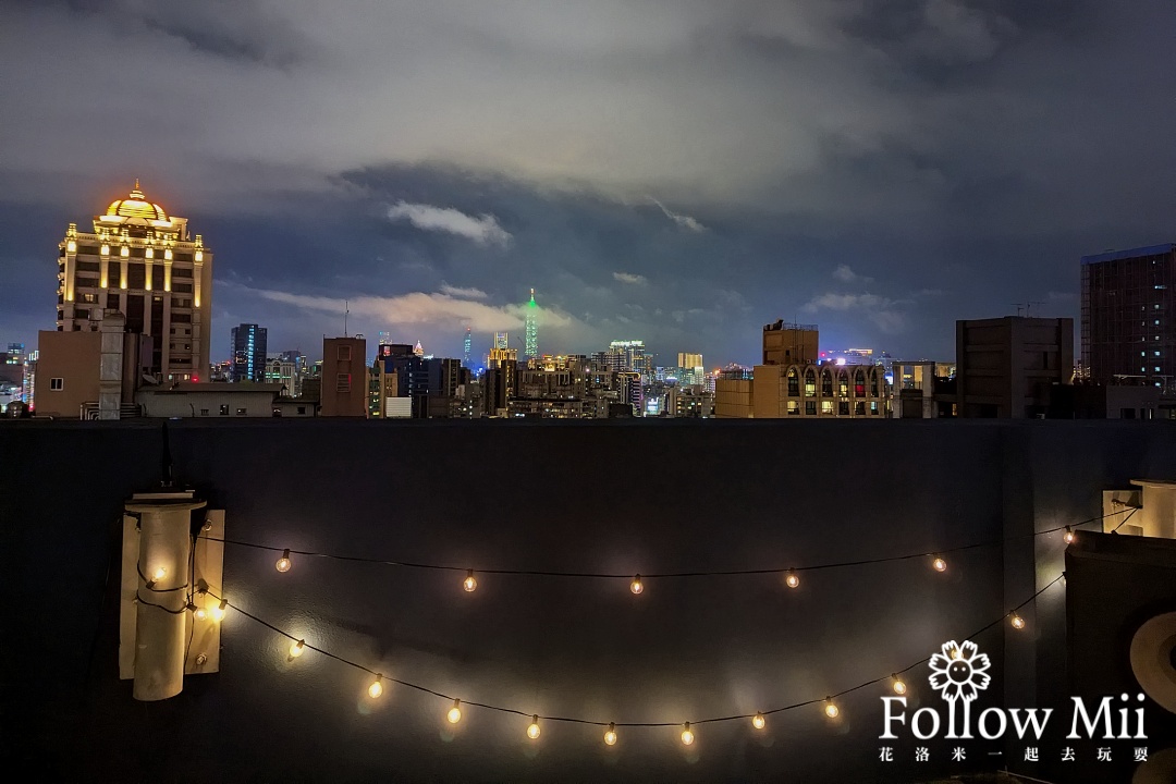 對了,帶大家到頂樓走走。最近頂樓有了酒吧!滿舒服的,可以喝點小酒賞賞夜色。連101都能看到喔!