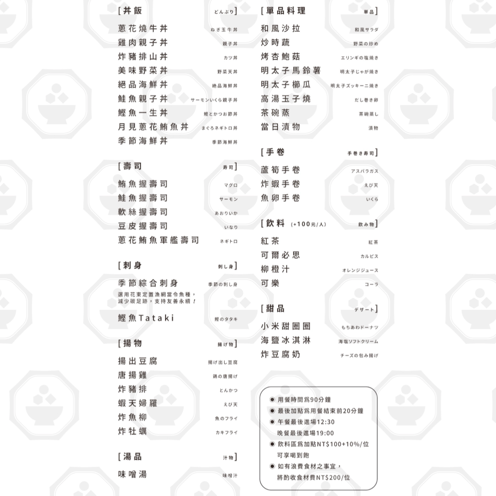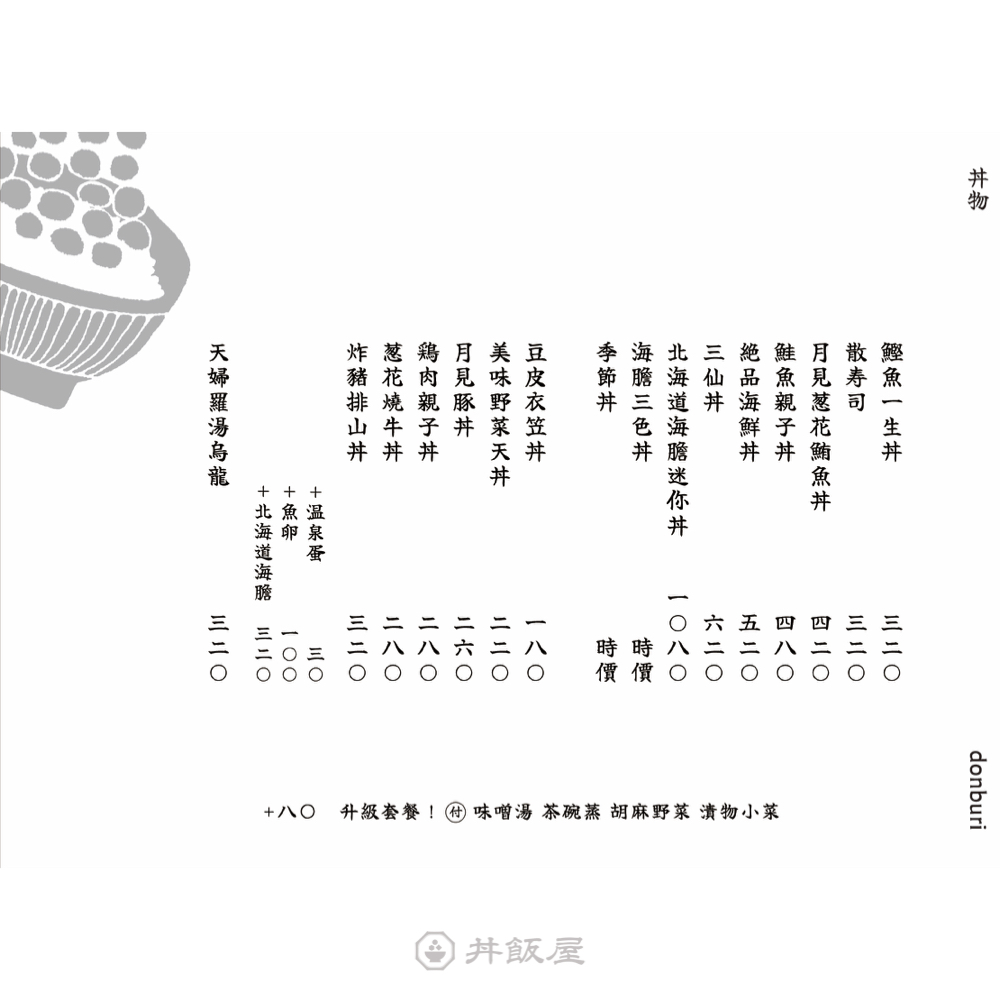 到底這家米崙丼飯屋賣些甚麼餐點呢?看看以下的菜單吧!