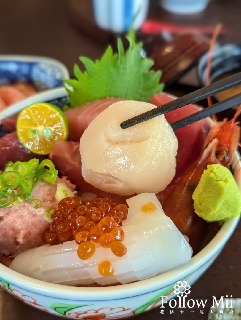 不管是生魚片還是干貝,新鮮程度都讓人滿意,而且對於丼飯的靈魂醋飯,整個調味也非常剛好。