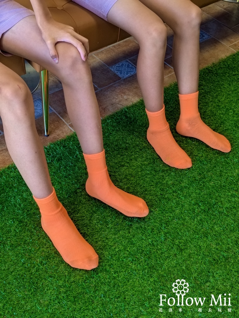還會贈送每人一雙橘色的棉襪,材質挺好的,穿著玩遊戲,結束了就帶回家喔!