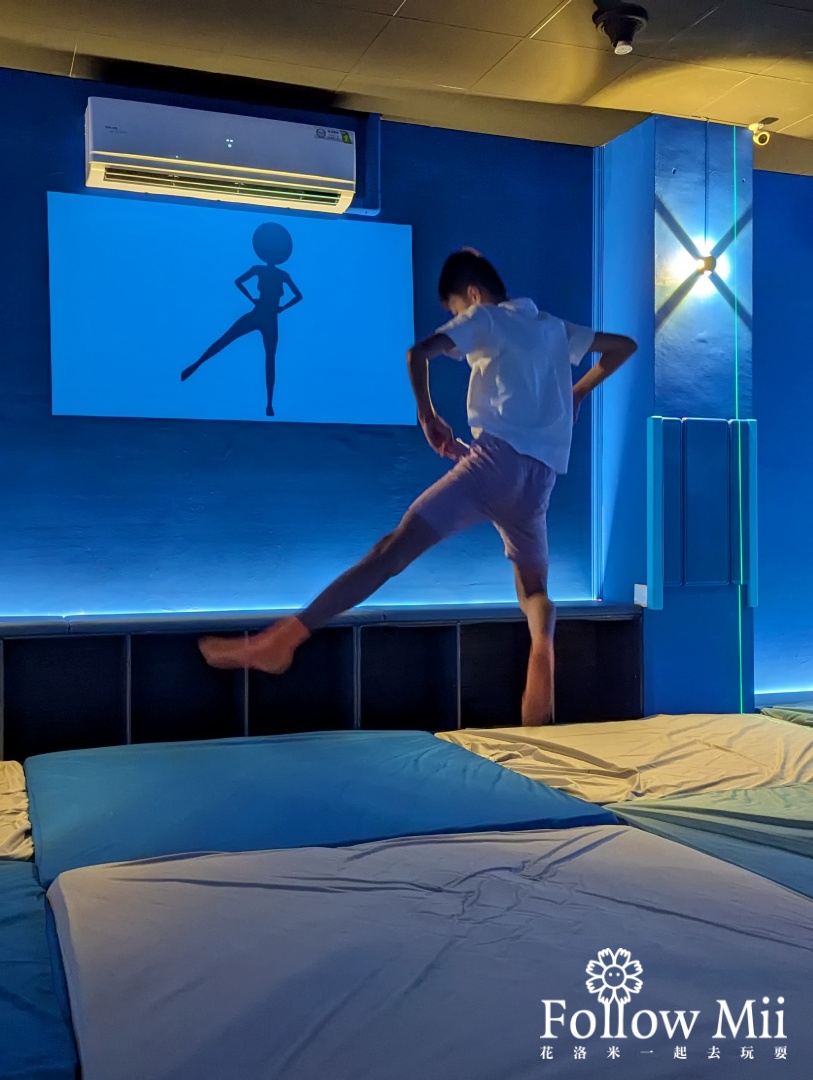 跳痛模仿王,是我們玩最久的遊戲。要跟著牆上的投影顯示的動作一樣,不只節奏跟上,動作也要到位。超難的啊!