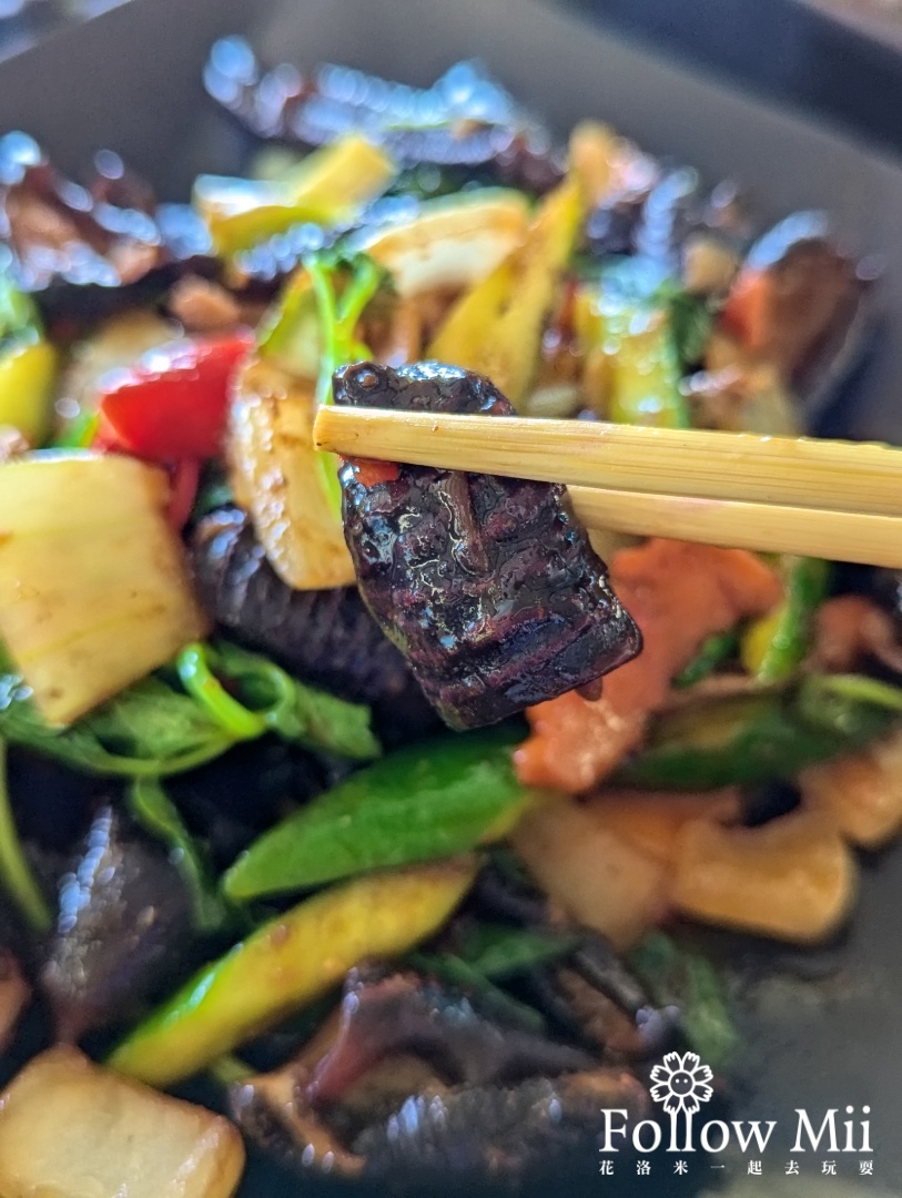 黑嚕嚕的一盤,外表看起來不是太起眼。但這邊先跟大家說一下,海香菇是因為黑黑的所以被稱為海香菇,但人家不是植物喔!海香菇是一種動物,不要誤會了!